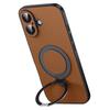 For iPhone 16 Case Compatible with MagSafe Genuine Cow Leather+PC Kickstand Phone Cover