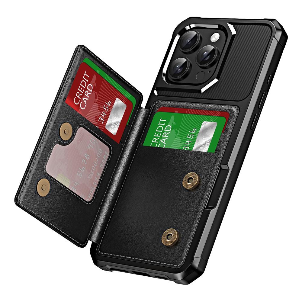 For iPhone 15 Pro Case Card Slot Kickstand Leather+TPU Reinforced Corner Phone Cover