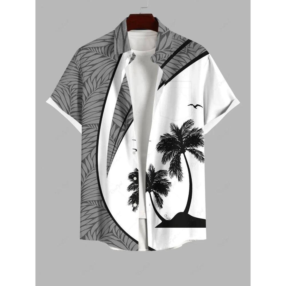 Męska Letnia Koszula z Krótkim Rękawem z Wzorem Drzewa Kokosowego, Drukowany Kołnierzyk, Koszula na Wakacje na Hawajach, Męska Codzienna Koszula Street Hip Hop z Krótkim Rękawem