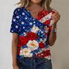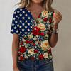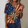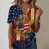 Women's fashionable casual short-sleeved Independence Day print V-neck top
