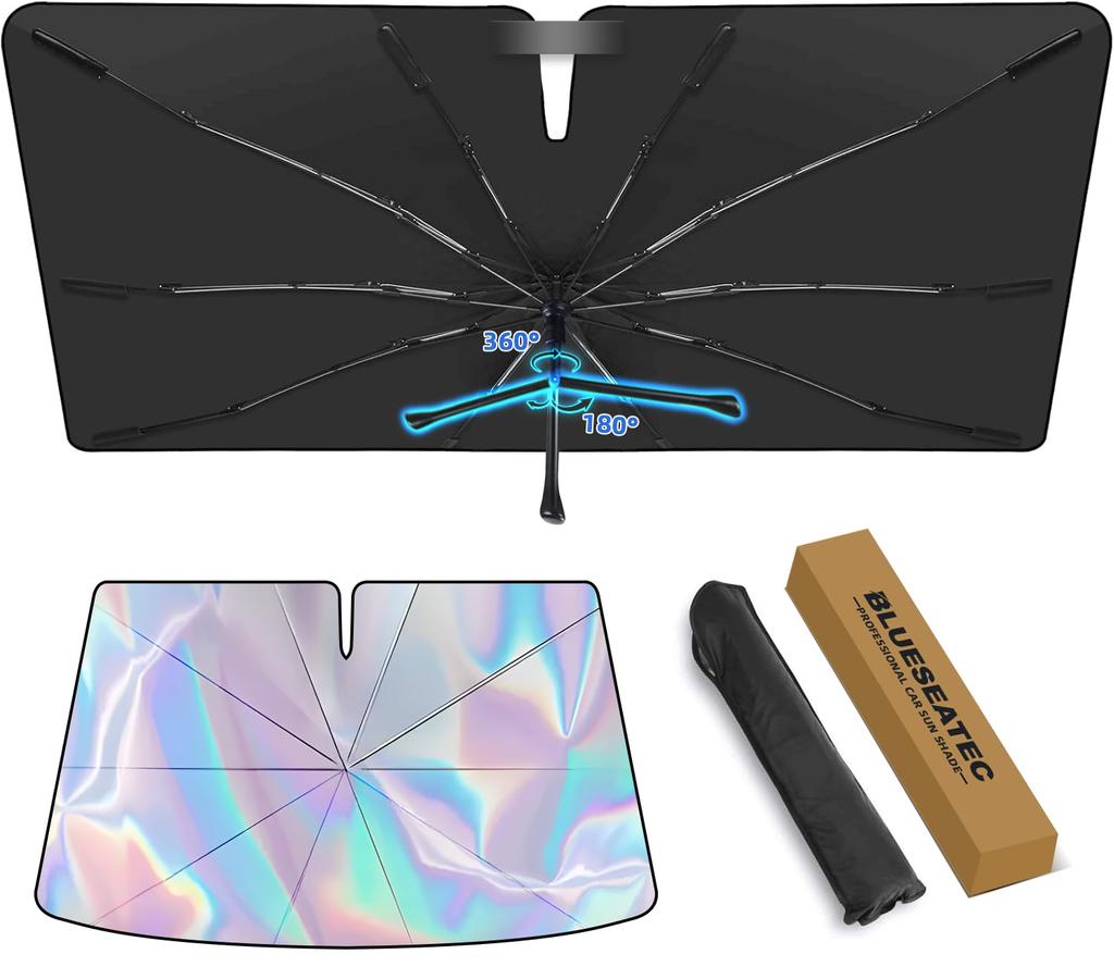 [Features the latest 2026 aurora-reflective fabric] The exterior windshield features a fantastical rainbow-colored (aurora) reflective fabric that changes color depending on the angle of the light. It not only blocks light, but also adds a stylish touch to your parked vehicle. It also effectively blocks dazzling views from outside, protecting your privacy and preventing theft. The thick insulating material blocks out strong sunlight and UV rays. It has been third-party tested to provide over 99% shading and over 99% UV protection. It helps prevent interior temperatures from rising in the hot sun, improves air conditioning efficiency, and prevents deterioration of the dashboard and interior.