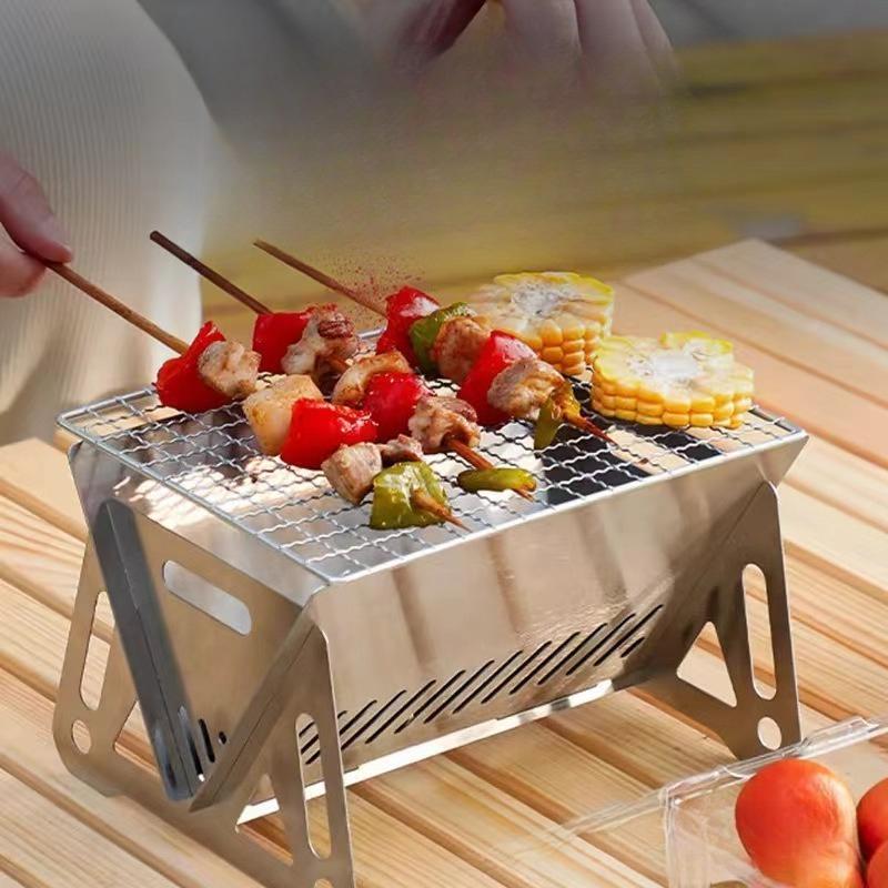 Outdoor Mini Grill, Barbecue, Camping, Folding Coffee Stove, Tea Drinking Charcoal Stove, Stainless Steel Card-style Small Stove