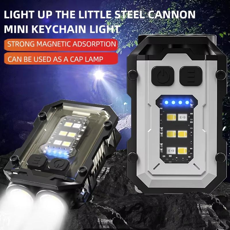LED Mini Portable Keychain Lamp Multi-functional Strong Magnet COB Flashlight Emergency Lighting and Warning Light