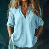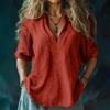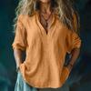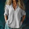 Women's Fashion Casual V-Neck Cotton-Linen Blend Shirt Loose-Fit Short-Sleeve Top
