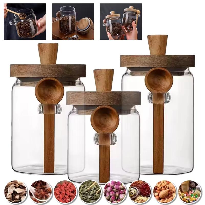 【Good Sealed Function】: The wooden lids with durable silicone sealing ring keep air out, creating an airtight and moistureproof environment to keep contents dry, allowing you to keep the food fresh for a long time. The wooden lid can only wipe with a wet cloth, don't wash directly.