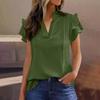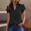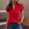 Damska casualowa bluzka z dekoltem V i dwuwarstwowymi falbankowymi rękawami