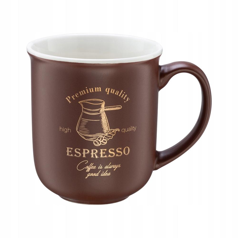 Kubek porcelanowy 380 ml brązowy ze złotymi napisami na ciepły napój 1 szt.
