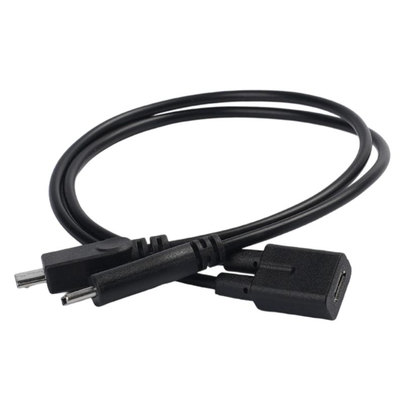 Double Output Charging Cable Tiny USB Female Input & Type C Male Plus Tiny USB Male Outputs 27cm for Phones & Tablets