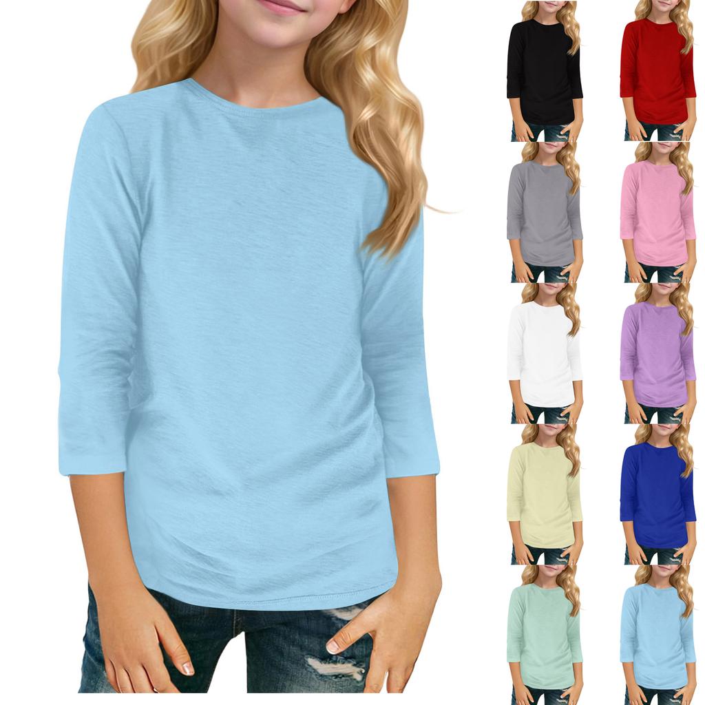 Dziecięca Codzienna Modna Koszulka z Krótkim Rękawem 3/4 z Okrągłym Dekoltem