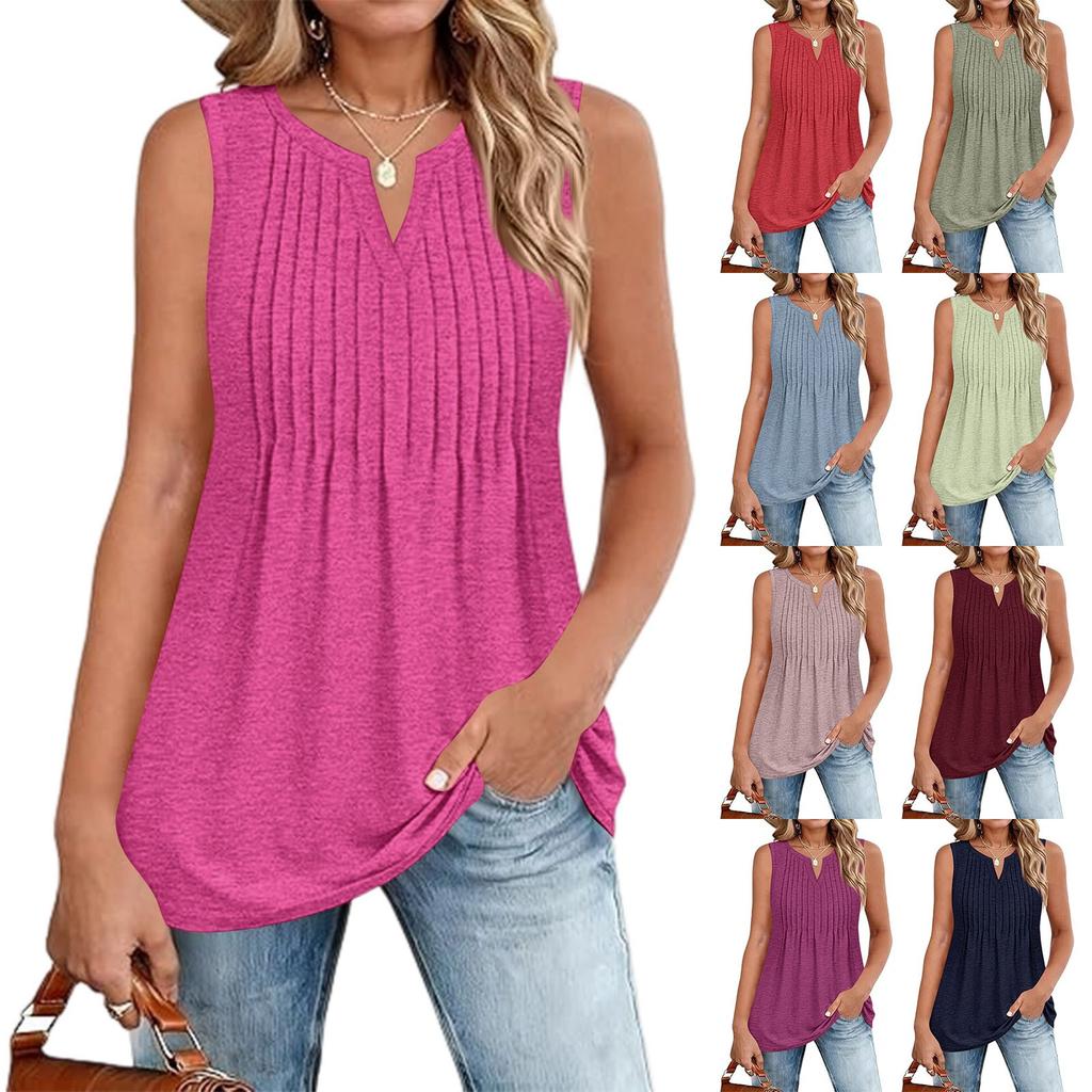 Women's Fashionable V-neck Loose Casual Pleated Sleeveless Vest Top