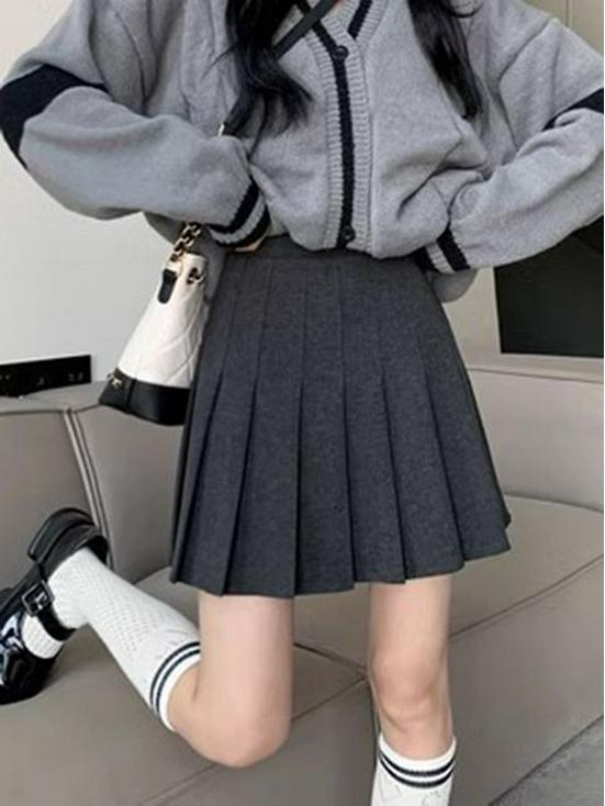 High-Waisted Woolen Pleated Grey Skirt - Autumn/Winter School Style JK Uniform Skirt