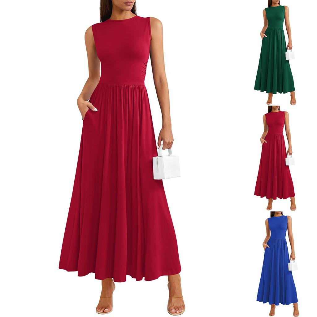Elegancka i stylowa damska sukienka bez rękawów z plisami