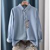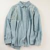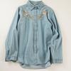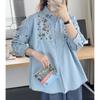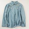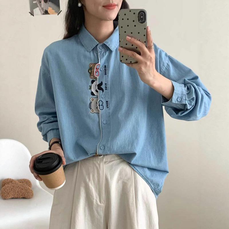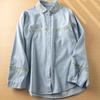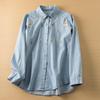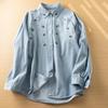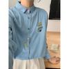 Women's Retro Cartoon Embroidered Cotton Denim Shirt - Long Sleeve, Casual Top for Spring/Autumn 2025