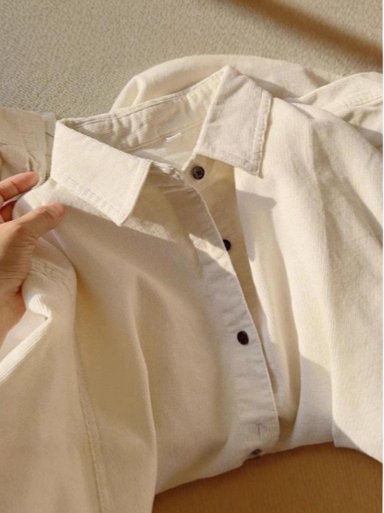 Women's Retro Corduroy Shirt Jacket: Spring/Autumn Loose Casual Long Sleeve Layering Top