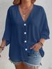 Spring/Autumn 2025 Women's V-neck Ice Silk Wrinkled Cardigan, Solid Color, Three-Quarter Sleeve, Loose Fit