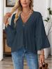 2026 European Women's Retro V-neck Ruffle Sleeve Spring/Summer Top