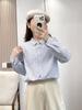 2026 Women's Spring/Autumn College Style White Oxford Shirt with Vertical Stripes – Long Sleeve, Artistic Fresh Trend