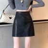Damska Czarna Spódnica A-Line z Czarnej Skóry PU z Wysokim Stanem - Modelująca Sylwetkę, Podkreślająca Biodra, Krótka, Przeciwko Odkrywaniu, Idealna na Wiosnę i Jesień.