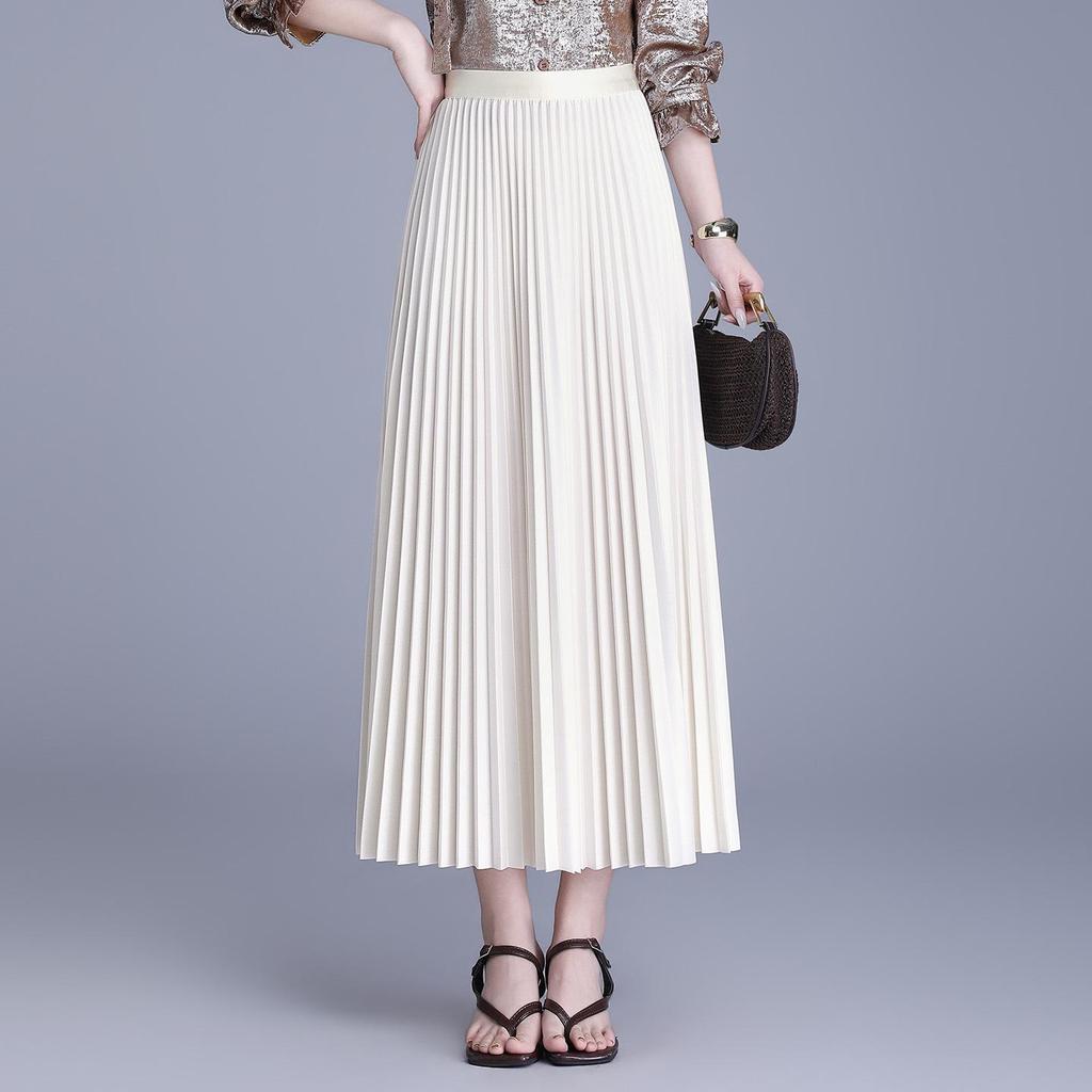 Plisowana spódnica A-line długa z gumką w pasie - Wszechstronny koreański styl - Wiosna-Lato 2026