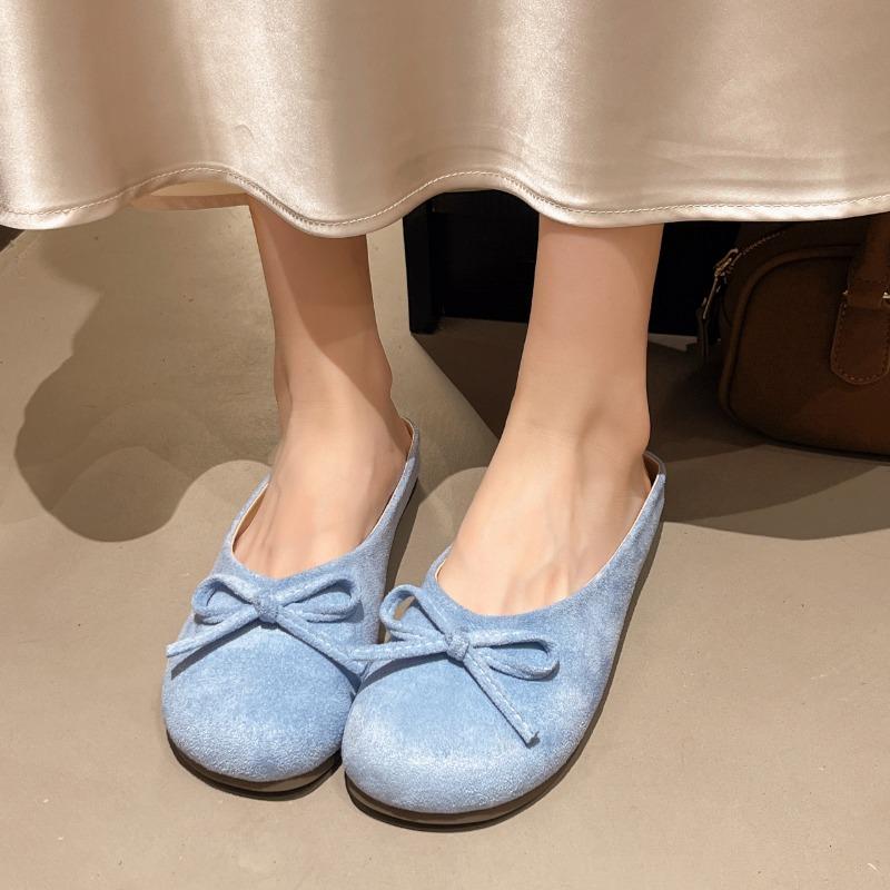 Women's Summer Outdoor Wear 2026 New Style with Flat Bottom Large Bow Soft Bottom Baotou Half Slippers