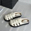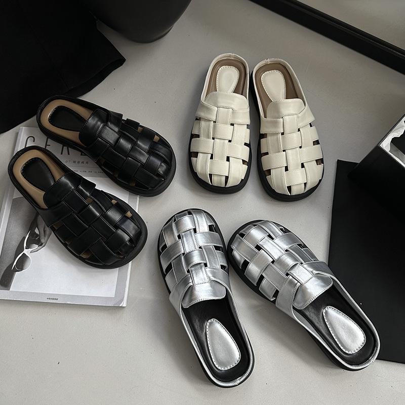 Casual Half Slippers Women Shoes Summer Indoor Outside Wear 2026 New Retro Weaving Hollow Thick Bottom Roman Slides Mules