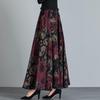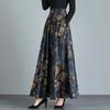 Autumn/Winter High-End Retro Floral Wool Maxi Skirt with Pockets, High Waist, and Large Flare.