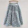 Damska spódnica midi A-line z wysokim stanem i kwiatowym wzorem 3D na rok 2025