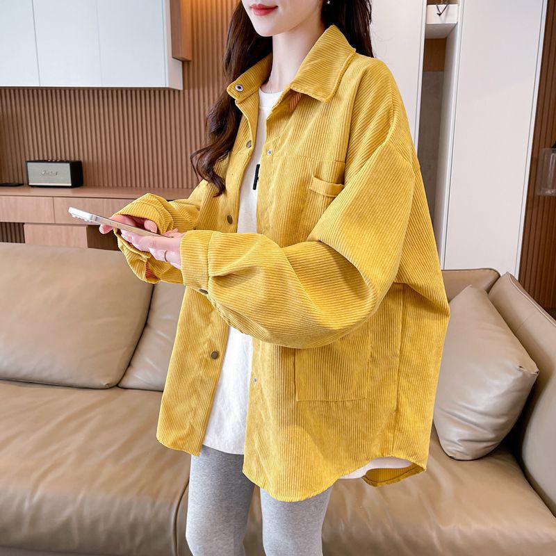 Postaw na styl i komfort dzięki tej koszuli z sztruksu z długim rękawem dla kobiet w rozmiarze plus, idealnej na wiosnę i jesień.. Wykonana z wysokiej jakości poliestru, ta koszula oferuje luksusowe odczucie i trwały design.. Dzięki unikalnemu dekoltowi typu „tailor” i luźnemu krojowi zapewnia zarówno elegancję, jak i swobodę ruchów.. Długie rękawy dodają pochlebnego charakteru, czyniąc go wszechstronnym dodatkiem do Twojej garderoby. Idealna dla osób poszukujących unikalnego, niszowego designu, ta koszula łączy funkcjonalność z szykowną estetyką.
