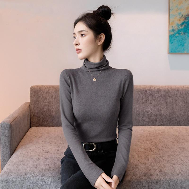Stay cozy and stylish this winter with our women's high-neck base layer shirt. Crafted from soft and insulating viscose fiber, this shirt features a plus velvet inner lining to keep you warm even on the coldest days. Its solid gray color offers a versatile and timeless look, perfect for layering under your favorite outfits. With long sleeves for added warmth, this shirt combines comfort and elegance, making it an essential addition to your winter wardrobe.