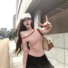 Koreański Jednoramienny Pasiasty Długi Rękaw Dopasowany Codzienny Damski Top
