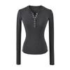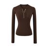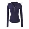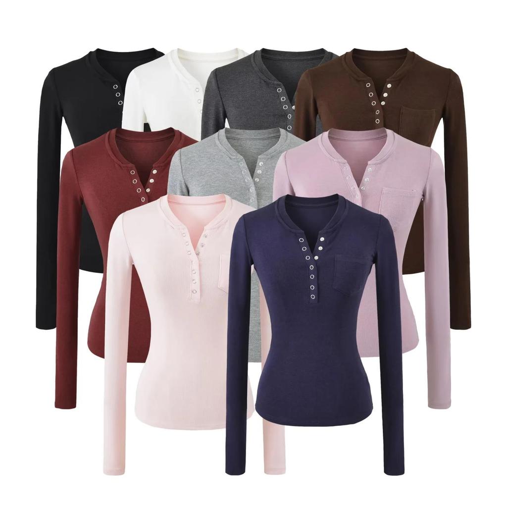 Women's Spicy American Button-Down Stand-Up Collar Faux Cashmere Slim Fit Base Layer Long Sleeve Top for Fall/Winter