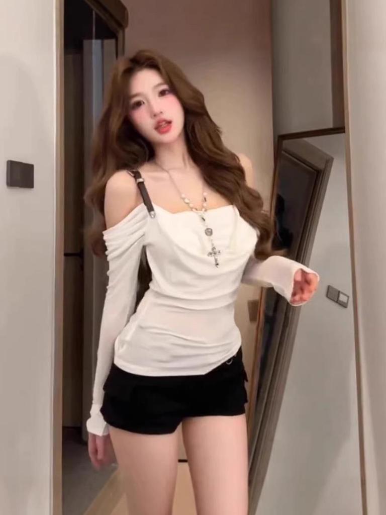 Korean Off-Shoulder Long-Sleeve T-Shirt: Stylish Autumn Slim Fit for Women