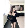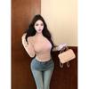 Women's Pink U-Neck Halter Top: Fake Two-Piece, Long-Sleeve, Slimming Base Layer for Spring/Autumn.