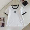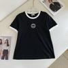 New Season Embroidered Letter Color Block Round Neck T-Shirt