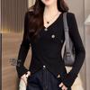 Plus Size V-Neck Slit Base Layer Top: Slimming, Flattering, and Fashionable Women's Autumn/Winter Inner Wear