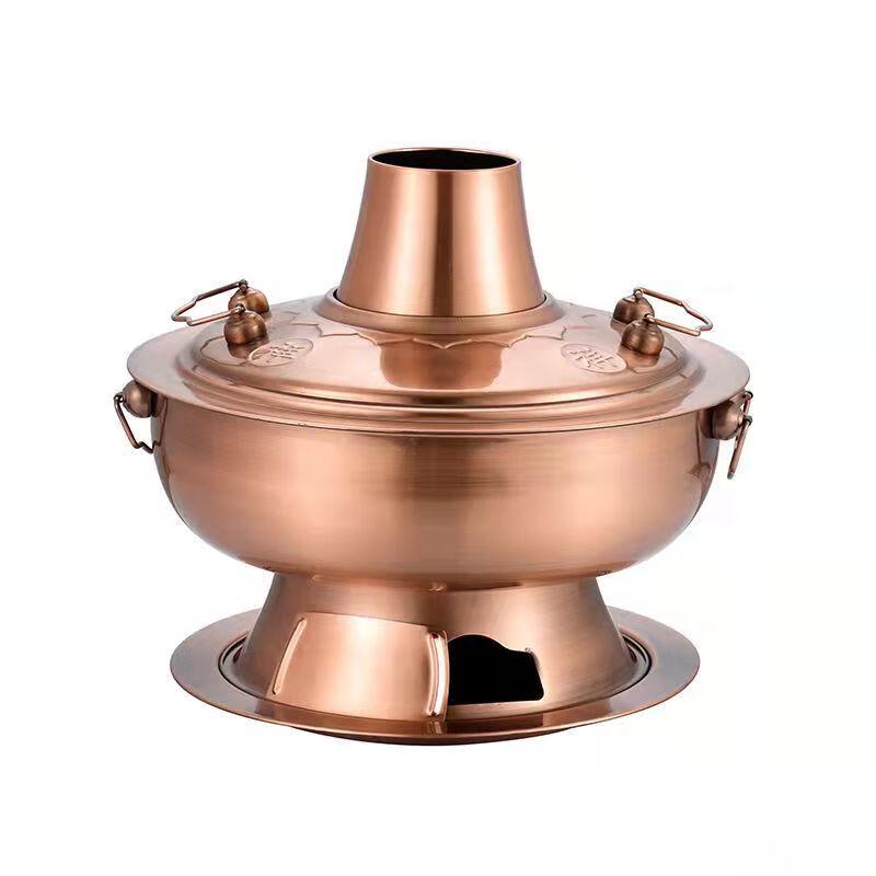 32cm Retro Copper Plated Stainless Steel Charcoal Hot Pot