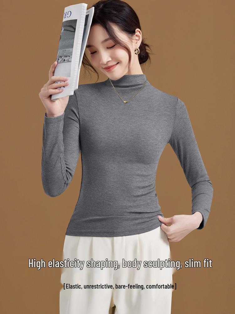 This Women's Slim Fit Ribbed High Neck Long Sleeve Top is perfect for both spring and autumn wardrobes. Crafted from soft and breathable viscose fiber, it offers exceptional comfort and a flattering silhouette. The solid pattern adds a touch of elegance, making it versatile for both casual and formal settings. The long sleeves provide added warmth, while the high neck design adds a chic, sophisticated look. Ideal for layering or wearing on its own, this top is a wardrobe essential for any fashion-forward individual.