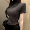Korean Dongdaemun Elegant Slim-Fit Sheer High Neck Short Sleeve T-Shirt for Women