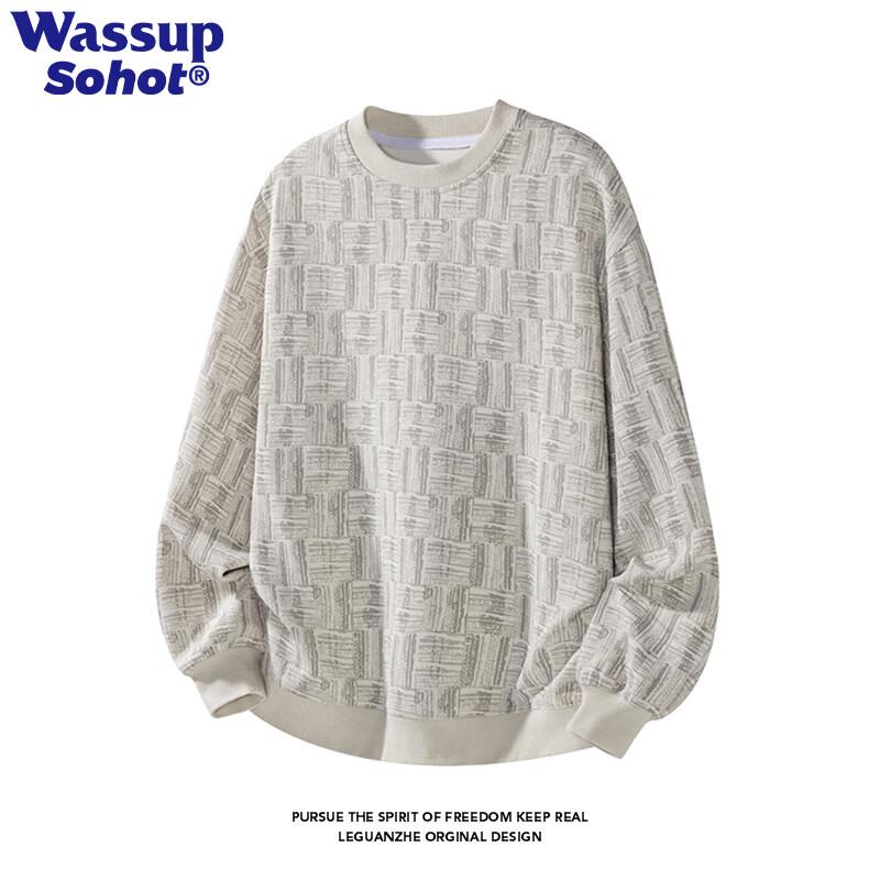 Wassup Sohot Men's American Retro Loose Casual Round Neck Long Sleeve Sweatshirt