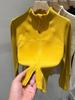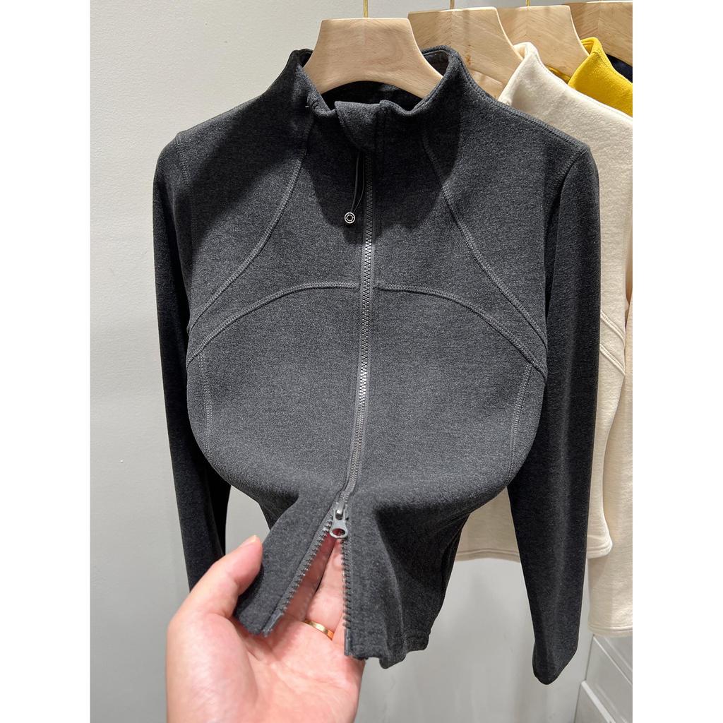 Women's Spicy Girl High-Neck, Waist-Cinching Warm T-shirt: Long-Sleeve, Double Zipper, Polar Fleece Base/Outerwear for Autumn/Winter