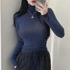 Korean Dongdaemun Women's Slim-Fit Cashmere High Neck Long Sleeve T-Shirt - Soft, Smooth, and Figure-Flattering