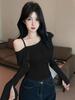 Korean Style Ruffle One-Shoulder Slimming Long-Sleeve Camisole - Women's Sweet & Spicy Autumn Fashion Top