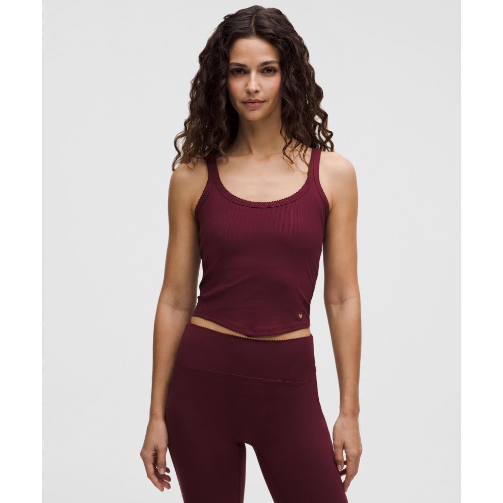 Lululemon Nulu Ribbed Cropped Tank Top Heart Burgundy Bay