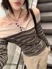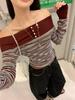 Retro Striped One-Shoulder Patchwork Slim Fit Long Sleeve Women's Top for Autumn 2025