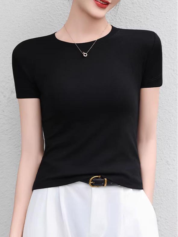 Women's Slimming Round Neck Short Sleeve T-shirt - Versatile, Breathable Solid Color for Spring/Summer