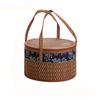 Hand Woven Foldable Bamboo Basket Round Vegetable Storage Basket Dessert Food Bag Gift