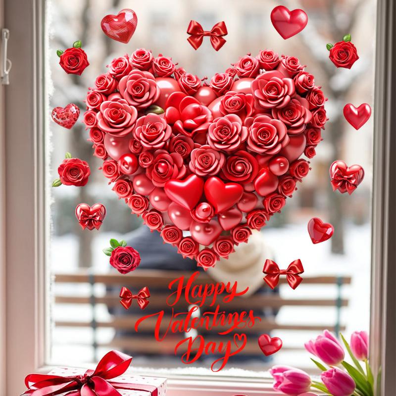 Valentine'S Day Window Clings Romantic Red Rose Heart Balloon Window Stickers Home Decorations
