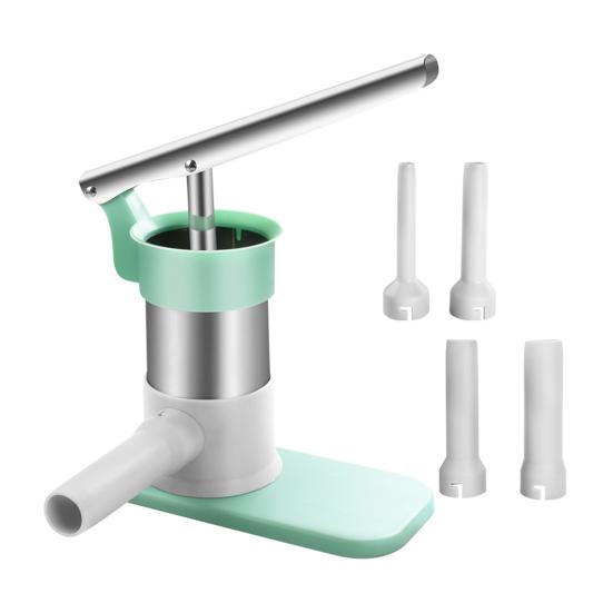 This manual sausage stuffer features a durable stainless steel construction designed to withstand high pressure and ensure long-term use with easy cleaning. Equipped with multiple interchangeable nozzles, it allows you to create various sausage styles, from breakfast links to bratwurst.