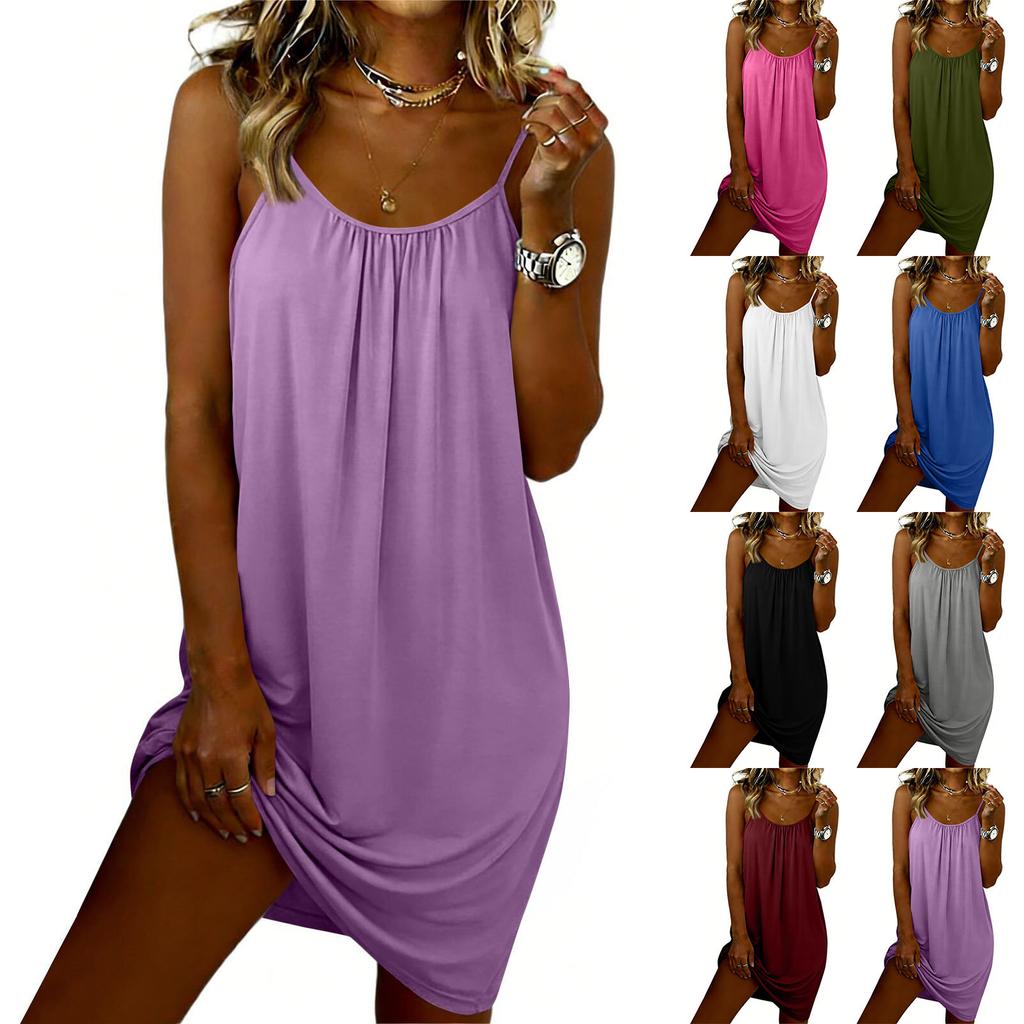 Modny Damski Luźny Bezrękawnik z Okrągłym Dekoltem Sukienka Plażowa Casual