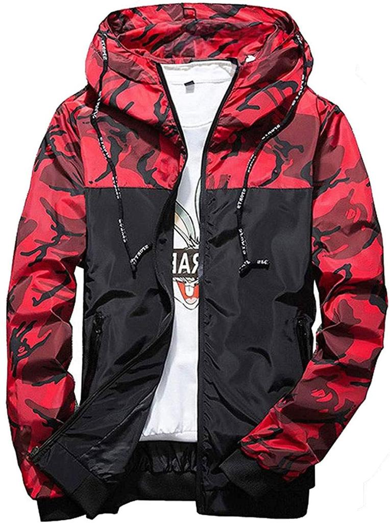 Hisitosa Camouflage Hoodie with Mountain Jacket for Outdoor Activities Men's Windbreaker, Zip-Up Hood, Lightweight, Windproof, Water-Repellent,